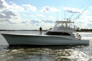 The Marli is a 58’ Ritchie Howell Custom Carolina sportfisherman powered by twin turbo diesels with a fast 33 knot cruise. The boat is equipped with TV, satellite radio, microwave, and A/C to make for a comfortable “Carolina” ride. Marli features state-of-the-art electronics, tackle and safety equipment.