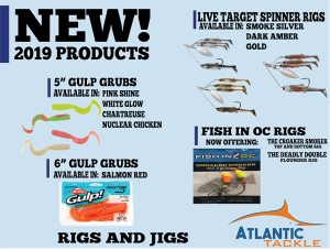 With spring brings fresh new lifestyle apparel, cutting edge tackle, and an overstocked store committed to exceeding our customer’s expectations. Atlantic has an impressive collection of lifestyle apparel and home decor while maintaining it’s status as the Mid-Atlantic’s largest and most complete tackle store. New clothing styles from brand names such as Huk, Dark seas, Salty Crew, Drake, Pelagic and Sitka. An amazing line of fishing themed home decor and gifts allowing you to include the saltwater experience in your home. Atlantic’s offerings for 2019 have expanded even more with new reels from Penn, Avet, and great tools and knives by Cuda. Several additions to our amazing collection of Gulp products including the 5″ grub in multiple colors. Spinner rigs from Live Target and new rigs by FishinOC. Don’t forget to pick up your Rite in the Rain notepad a must have for any fisherman!